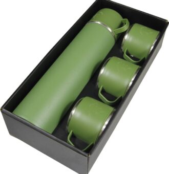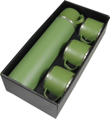 4 Termos Bardak ve 1 adet vakumlu termos mataradan oluşan setimiz özel çantalı kutusundadır. 1 Matara : 600 ml ,